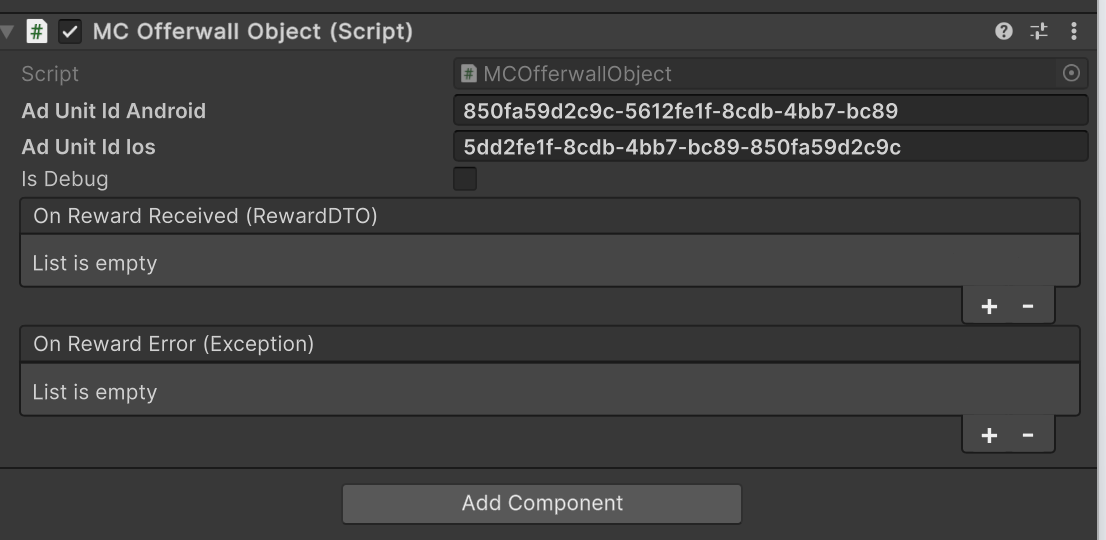 Select the created MyChips game object in your scene. In the Inspector window, you'll need to add your Ad Unit ID.